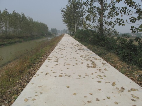 为降低干渠通水对工期的影响,我项目部精心谋划,在干渠通水期间顺利完成2300米的混凝土防汛道路。现在干渠通水任务基本结束,项目部一边积极排水降低水位,争取早日复工;一边组织实施二次坡面修整,以确保混凝土护坡的质量和美观。