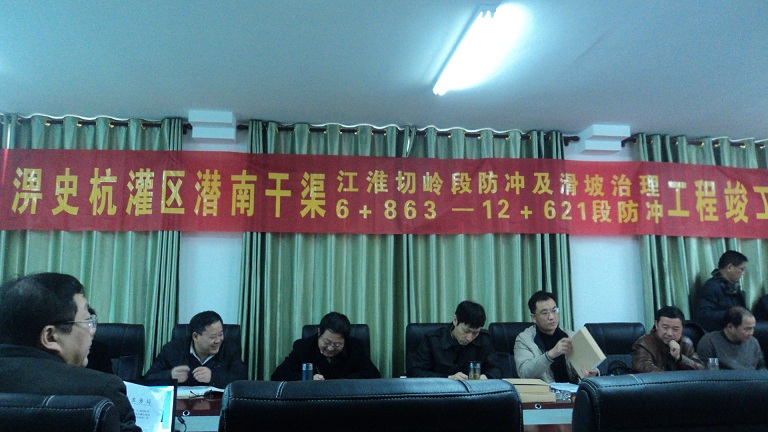 2013年12月17日,淠史杭灌区潜南干渠(6+863~12+621)段防冲、江淮切岭段防冲及滑坡治理工程竣工验收会议在潜南分局磨墩管理所召开。合肥市水务局、合肥市财政局、合肥市水利工程质量监督站、安徽省淠史杭灌区续建与节水改造工程建设管理局、肥西县财政局、肥西县水务局、 潜南分局以及勘探、设计、监理、施工单位参加会议。验收委员会在通过查看工程建设现场情况、 观看影像资料, 听取建设、勘测、 设计、 施工、 监理等单位情况汇报后认为,淠史杭灌区潜南干渠(6+863~12+621)段渠道防冲工程已按批准的建设内容全部完成, 工程资料齐全,同意通过竣工验收。