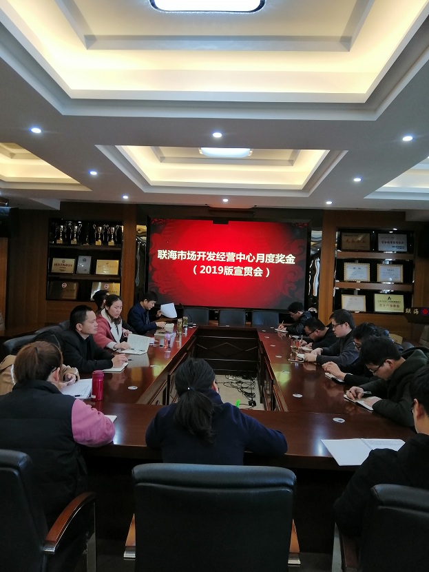 2019年3月26日,市场开发经营中心在五楼会议室召开联海市场开发经营中心月度奖金(2019版)宣贯会。会上,市场开发经营中心总经理施晓峰对2019版月度奖金方案进行了宣读和讲解,充分分析了新版绩效考核的目标与方向,重点讲解了新版绩效考核的奖励机制,有效地激励了经营中心全体同仁的工作激情。新版绩效考核方案与集团公司年度目标作了无缝对接,为实现年度目标提供了更科学的管理手段。会议期间,与会人员积极参与讨论,对新版绩效考核方案的核心内容作深刻的学习理解。